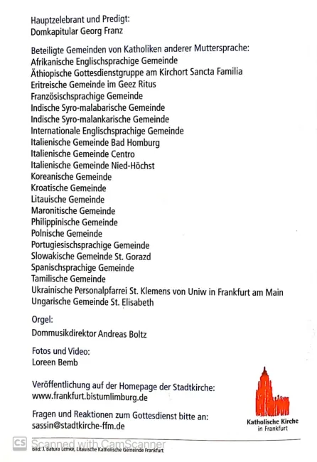 -Gottesdienst der Sprachen und Nationen- 2024. május 18-án, 18 órakor volt celebrálva a Nemzetek miséje (Gottesdienst der Sprachen und Nationen) a frankfurti Szent Bertalan-dómban.