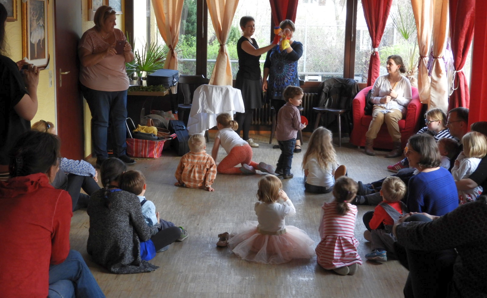 A program 17.00-kor kezdődött, amikor a legkisebbek Vass Mária ’Babi’ vezetésével népi gyermekjátékokkal és sárközi táncmotívumokkal ismerkedhettek meg. Ezt a Hétszínvirág című mese bábos előadása követte, amiben Babi mellett Hortobágyi Ivett és Szabó Janka KCSP ösztöndíjasok is segítettek a gyerekek figyelmének lekötésében. Az óvodások foglalkozását kézműveskedés zárta, ahol hímes tojásokat színezhettek, valamint papírból tavaszi virágcsokrot készíthettek az érdeklődők.