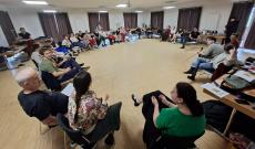 Vasárnap reggeli után a két csoporttal közösen átismételtük az addig tanultakat és még néhány újabb motívumot is tanultunk. Pihenésképp egy kvíz következett, amiben a táncosok felmérhették, hogy milyen elméleti tudással maradtak a két nap után. Ezt követően átismételtük a hétvégén tanult énekeket, zárásként két páronként mindenki megmutathatta, hogy mennyire maradtak meg bennük a rábaközi tánclépések. Zárásként egy nagy körben ülve mindenki röviden megoszthatta a hétvégén megélt tapasztalatait, élményeit. Megható volt végighallgatni, hogy mindenki mennyire lelkesen beszélt erről a rövid, de tartalmas időről, amit együtt töltöttünk: kiemelték a sokszínű, igényes programot, a jó hangulatú táncpróbákat, a barátságos, fáradhatatlan zenekart, a finom ételeket és összességében a családias hangulatot, ami az egész hétvégét átitatta. Ezután már csak az épület kiürítése, takarítása és a jól megérdemelt ebéd következett.