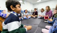 Olga a legkisebbeknek tartotta az első órát, amelyen az anyukákkal együtt vettek részt a gyerekek. A nagyobbak ezt követően hangszerbemutatóval egybekötött zenés foglalkozáson vehettek részt, és külön öröm volt nekem hallani, hogy az előző alkalmakon tanult népdalokat már biztonsággal, örömmel énekelték együtt Olgával.