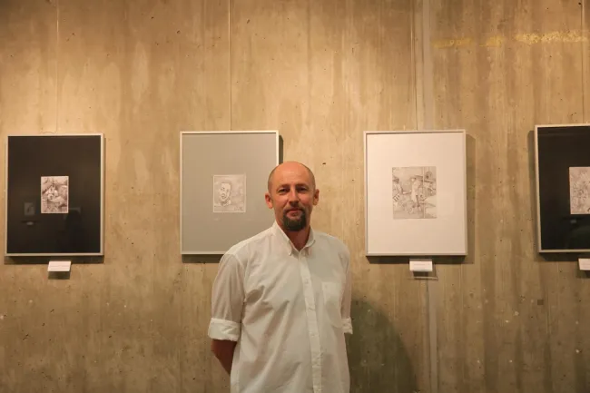 Rohály Ferenc Kárpátalján született alkotó a számomra eddig ismeretlen tollkarc technikával dolgozik. Abban a szerencsében volt részem, hogy láthattam miként áll össze az apró pici vonásokból maga a kép. Ábrázolását tekintve talán a rézkarchoz tudnám hasonlítani, ahol a fehér és fekete váltakozása, az árnyalatok dominálnak. A kiállítás címe „Útközben”, s az önéletrajzot olvasva világosodott meg bennem, hogy Ferit szülei gyermekkorában próbálták elindítani a művészet útján látva rajzolás iránti szenvedélyét, de akkor eltanácsolták, mondván: nem tehetséges. A szorgalom, a kitartás és az erős akarat, az elhivatottság nem engedte őt csüggedni?