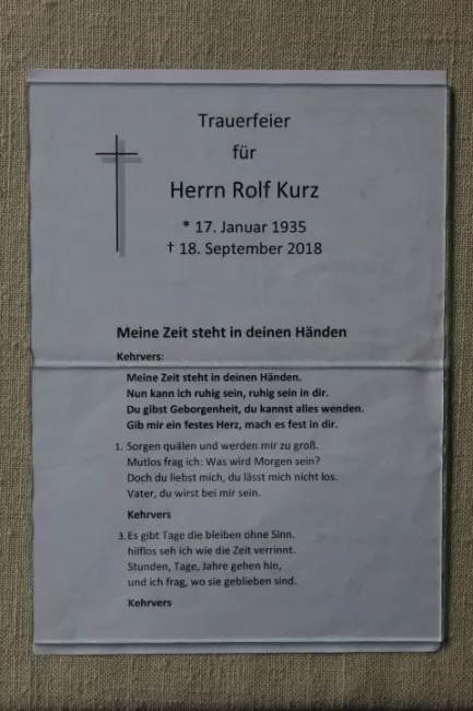 A búcsú-istentisztelet szeptember 25-én, a schmideni Dionysios Evangélikus templomban volt, ahol Angelika Hammer ev. lelkésznő a 121. zsoltár alapján szólt a vigaszt adó Istenről. Számos prominens elöljáró is tiszteletét tette, kik szintén szóltak, és méltatták az elhunytat. Jelen volt Württemberg volt belügyminisztere, Erwin Teufel (CDU), a tartományi miniszter, Thomas Strobl (CDU), a város főpolgármestere, Gabriele Zull. Hazánk nevében a Berlinből érkezett nagykövet, Györkös Péter szólt a gyászolókhoz, és tolmácsolta Orbán Viktor miniszterelnök, valamint Szijjártó Péter külügyminiszter részvétét, de jelen volt Berényi János főkonzul is. A fellbachi Paulus Kirche lelkésze, Gémes Pál és jómagam képviseltük a Württembergi Protestáns Gyülekezetet. A feltámadott Krisztus keresztje adjon békességet!