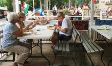 Mindeközben már sültek a lángosok, a kürtőskalács, s egész nap kígyóztak a sorok a magyaros menüért. Most is töltött káposztából, paprikáscsirkéből és gulyáslevesből fogyott a legtöbb, de a cipóba porciózott pörkölt és a lacipecsenye is népszerű volt. Rég nem látott ismerősök köszöntötték egymást, eszegettek-iszogattak, a gyerekek játszottak, kézműveskedtek, célba lőttek. A sportpályán hagyományosan barátságos focimeccs zajlott, ezúttal az ukránok csapata ellen. A „Pesti Kávézóban” krémest és tortaszeletet árultak, a teraszon Alex Udvary bandája muzsikált. A Clevelandi Magyar Múzeum és a Szent Imre templom a piactéren ajándéktárgyak bőséges kínálatával várta az érdeklődőket, akik a Magyar Apparel és a Hungarian Marketing standjainak egyedi tervezésű pólóiból is válogathattak, de folyamatosan üzemelt a könyvbörze is.