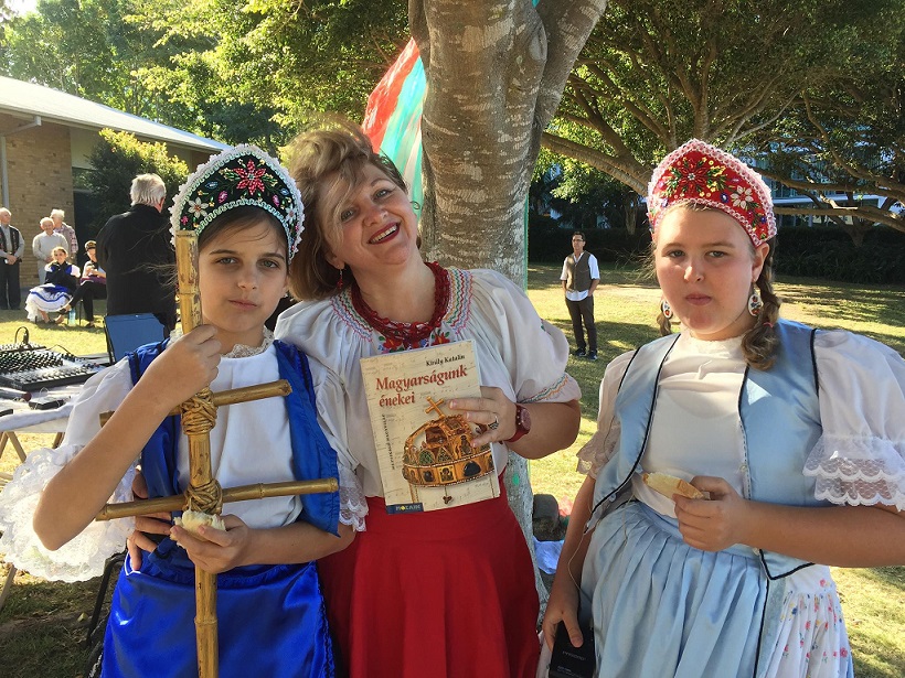 Ami viszont nem maradhat ki semmiképpen a rovatból, hogy a Gold Coast-i Szivárvány Magyar Iskola tanulói sokat hozzátettek a megemlékezés sikeréhez. Izgatottan vártuk a fellépést, hiszen egy olyan műsorszámmal készültünk a gyerekekkel, mely a korábbi évektől picit eltérő volt, ugyanis egy színdarab köré íródott az előadás. Egy magyar paraszt család házába csöppentünk, ahol ebédkor az édesapa megkérdi családját, mégis mit tudnak Szent István királyunk dicső napjáról. A beszélgetésbe belecsent mélyenszántó verseket a gyerekek kitűnően szavalták el a gyönyörű népi ruhákban felöltözve. Kétség nem fér hozzá, hogy egy sikeres előadást tudhatunk magunk mögött, akik alig várjuk, hogy újra színpadra léphessünk, ugyanis lámpaláznak nyoma sem volt a színpadon.