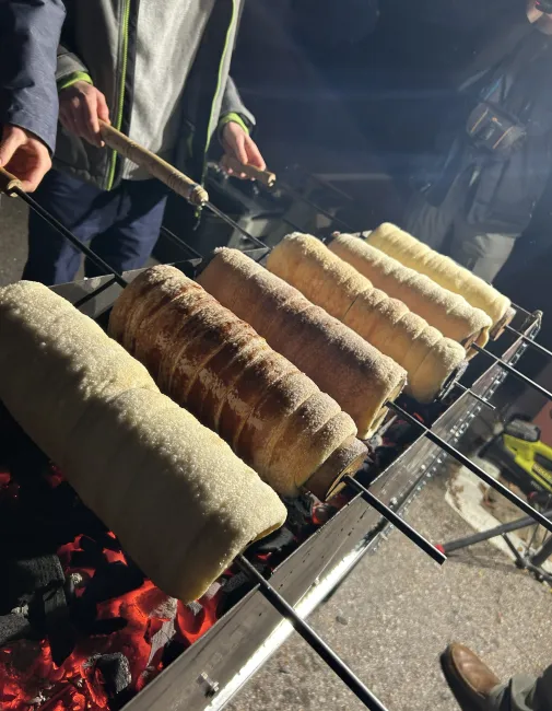 A vacsora igazi különlegességét azonban az önkéntesek által saját kezűleg sütött kürtöskalács jelentette. A vendégek első kézből tapasztalhatták meg, milyen az, amikor a frissen sült kalács ropogós cukormáza még melegen olvad a tésztán. A fahéjas és vaníliás illatok gyorsan betöltötték a termet, a kürtőskalács pedig méltán vált az est egyik legkedveltebb csemegéjévé.
