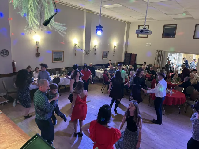 A vacsora után elkezdődött az este fénypontja, a nagy, jó hangulatú táncház. A zenekar hagyományos magyar dallamokkal csalogatta a táncparkettre a vendégeket, ahol fiatalok és idősebbek együtt ropták a magyar néptánc lépéseit. A közös éneklés, a vidám kacagás és a felszabadult mozgás olyan élményt teremtett, amelyre még sokáig emlékezni fognak azok, akik részesei lehettek.
