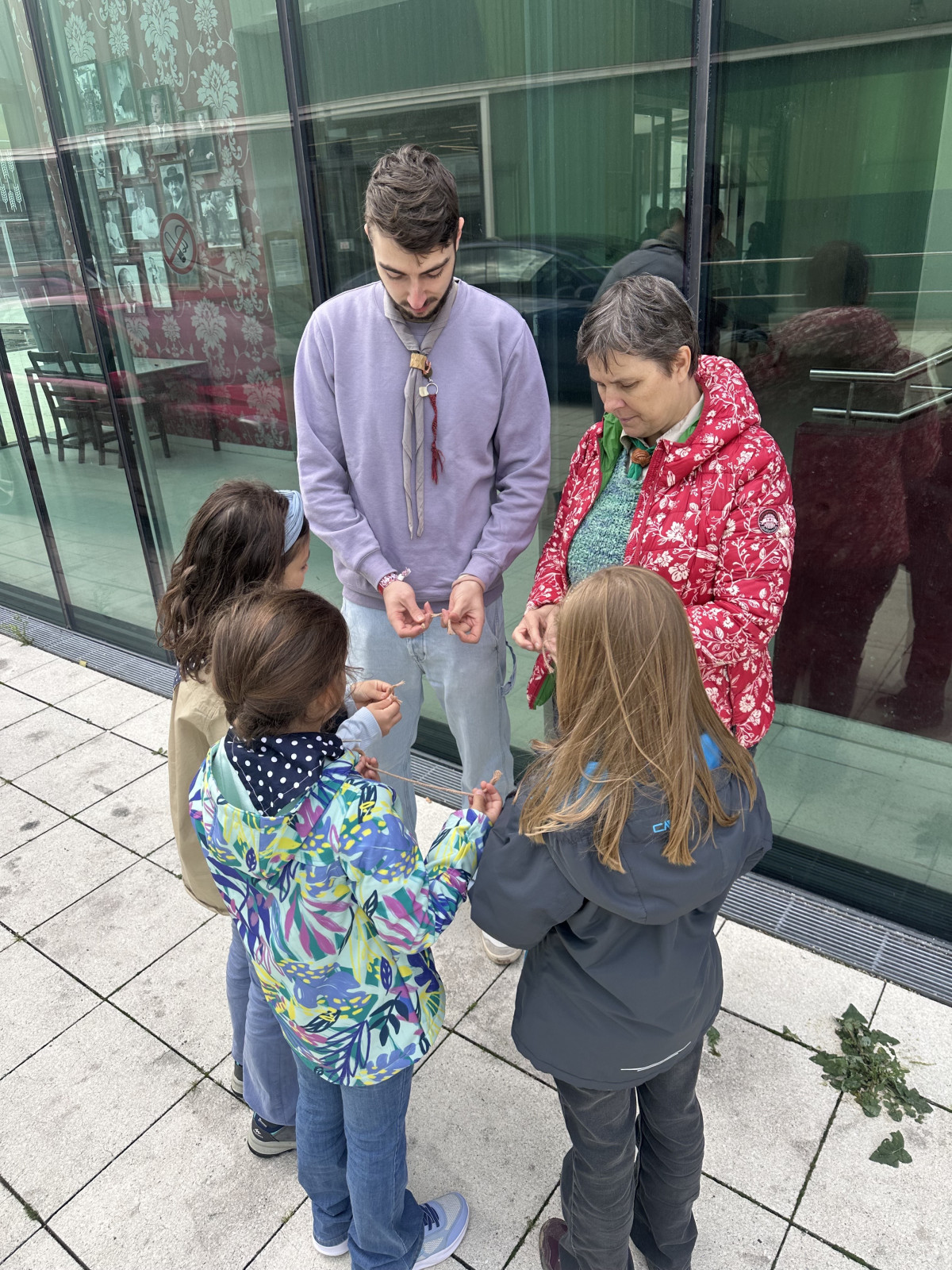 A napot szabadtéri gyermekjátékokkal kezdtük, majd később a csomózás fortélyait is elsajátíthattak a kiscserkészek. Végül barkácsolással és közös kézműveskedéssel foglalhatták el magukat a gyerekek Ferenczy Vass Éva vezetésével, hogy otthonra is valami szép emlékkel térhessenek haza. Ezalatt a nagyobb cserkészekkel igyekeztünk a felnőttekkel szóba elegyedni és a cserkészetről beszélgetni velük.