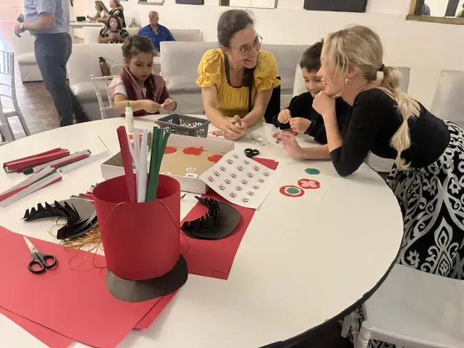 A délutánt közös alkotással indítottuk: a legkisebbek és a vállalkozó kedvű felnőttek saját kezűleg készíthettek kokárdát és papír huszárcsákót, így mindenki büszkén viselhette a nemzeti színeket az ünnepség alatt.