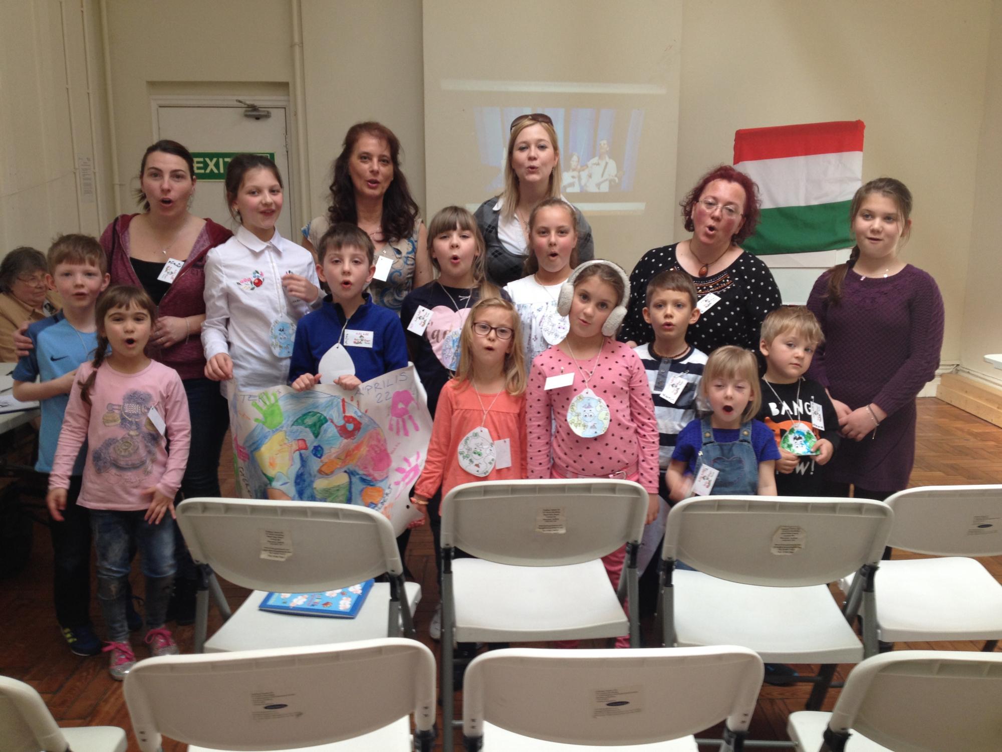 Ebéd utén aztán a Föld Napja alkalmából beszélgettünk a környezetvédelemről, s rajzoltunk közösen egy gyönyörű plakátot, majd a Jobb veled a világ Alapítvány felhívására elénekeltük közösen a videó segítségével az Énekelj a Földért kezdeményezés dalát, a Gyújts egy gyertyát a Földért című dalt. A fotó a Zsigmond Király Hungarian Cultural Club and School és a Szóló Szőlő Chesteri Magyar Tanoda diákjairól és rajzukról azóta már a felhívás honlapján látható. Nagyszerű volt látni a gyerekek lelkes együtt munkálkodását!