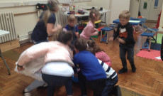 A verseny előtt azonban sok dolgunk volt még. Először is a Balassi-füzetekből meséltünk, eljátszottuk, megbeszéltük a meséket és a hozzájuk kapcsolódó feladatokat is elvégeztük. Jól elfáradt mindenki, így egy kis tánccal lazítottunk. Nagyon ügyesen ment, s senki meg nem mondta volna, hogy a gyerekek nem egy magyar iskolából valók. Hiába, a tánc nyelvét mindenki beszéli!