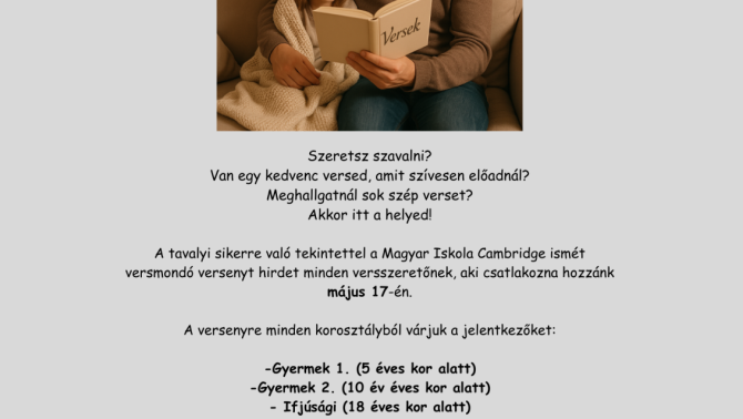 Májusban ismét megrendeztük a Magyar Iskola Cambridge egyik legszebb hagyományokat ápoló eseményét: a versmondó…