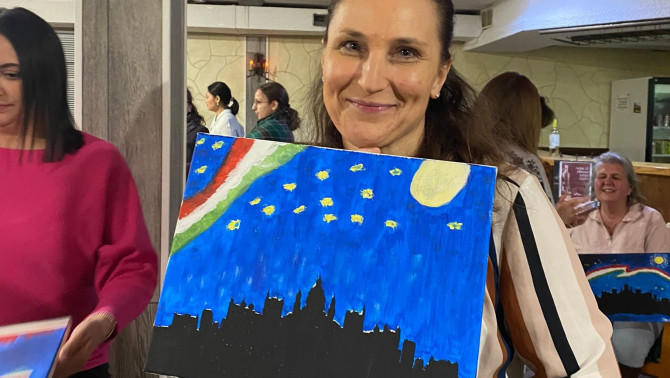Az éjszakai Budapest fényei köszöntek vissza a festővásznakról 2025. január 18.-án a Cambridge-i Kossuth Házban. A…