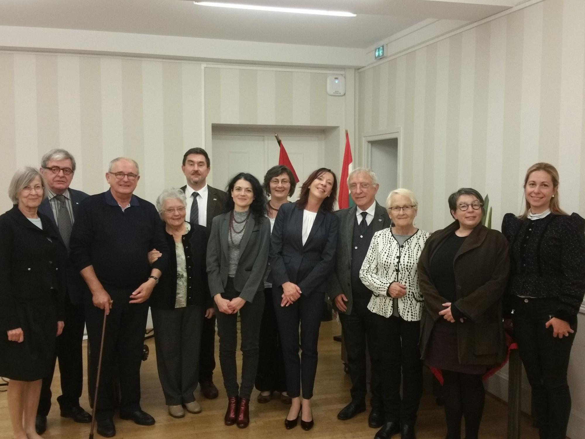 A Szózat után a programot Reményi György a grenoble-i magyar egyesület elnöke és Lengyel Zita, párizsi konzulasszony nyitották meg. Az ünnepi megemlékezés fő előadója Válóczy István dandártábornok volt, akit nemzetőrként életfogytiglanra ítéltek '56-ban. Kirakat-peréről, életútjáról készült filmes bemutatója után kerekasztal beszélgetésben kérdezhetett tőle a közönség. Miskolczi Ilona, Grenoble környékén élő magyar származású hölgy is megosztotta gyerekkori élményét a szüleivel való menekülésről - ő is a magyar órák rendszeres résztvevője. Ezután az '56-os emlékbizottság által készített „Az én ötvenhatom” című videógyűjteményből vetítettünk. A Himnusz közös eléneklése után ezúttal is állófogadással zárult a program.