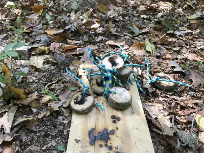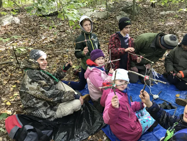 Másnap újult erővel, reggeli tornától (és kávétól) felmelegedve ültünk asztalhoz, ahol már várt az öt csillagos bio reggeli - nagyon köszönjük még egyszer! Reggeli után sétáltunk egy kicsit az erdőben, hogy megtaláljuk a tökéletes helyet a számháborúhoz, és kezdetét vette az izgalmas csata… miután mindenki ráírta tollal a kezére a számát, nehogy elfelejtse. Utána csomókat és kötözést tanultunk az őrsvezetőktől, és mindenki készített egy keresztet. Az október 23-i megemlékezés részeként mindenkinek a kedvenc magyarországi emlékére kellett gondolnia és letenni valahol az erdőben a kis keresztet. Ekkor már nem volt sok idő addig, míg megérkeztek a kiscserkészek, úgyhogy nekiálltunk az elvarázsolt táborhely megépítésének őrsönként, és együttes erővel tábori emléket is készítettünk mindenkinek, amit a nyakkendőn lehet hordani. A hatcsillagos ebéd után összepakoltuk a sátrakat és vártuk a kiscserkészeket, akik energiabombaként robbantak be a természetbe, nem győztük tartani az iramot. Együtt játszott és kirándult az egész csapat. Mindenki, ha fáradtan is, de mosollyal az arcán tért haza. Alig várjuk a következőt!