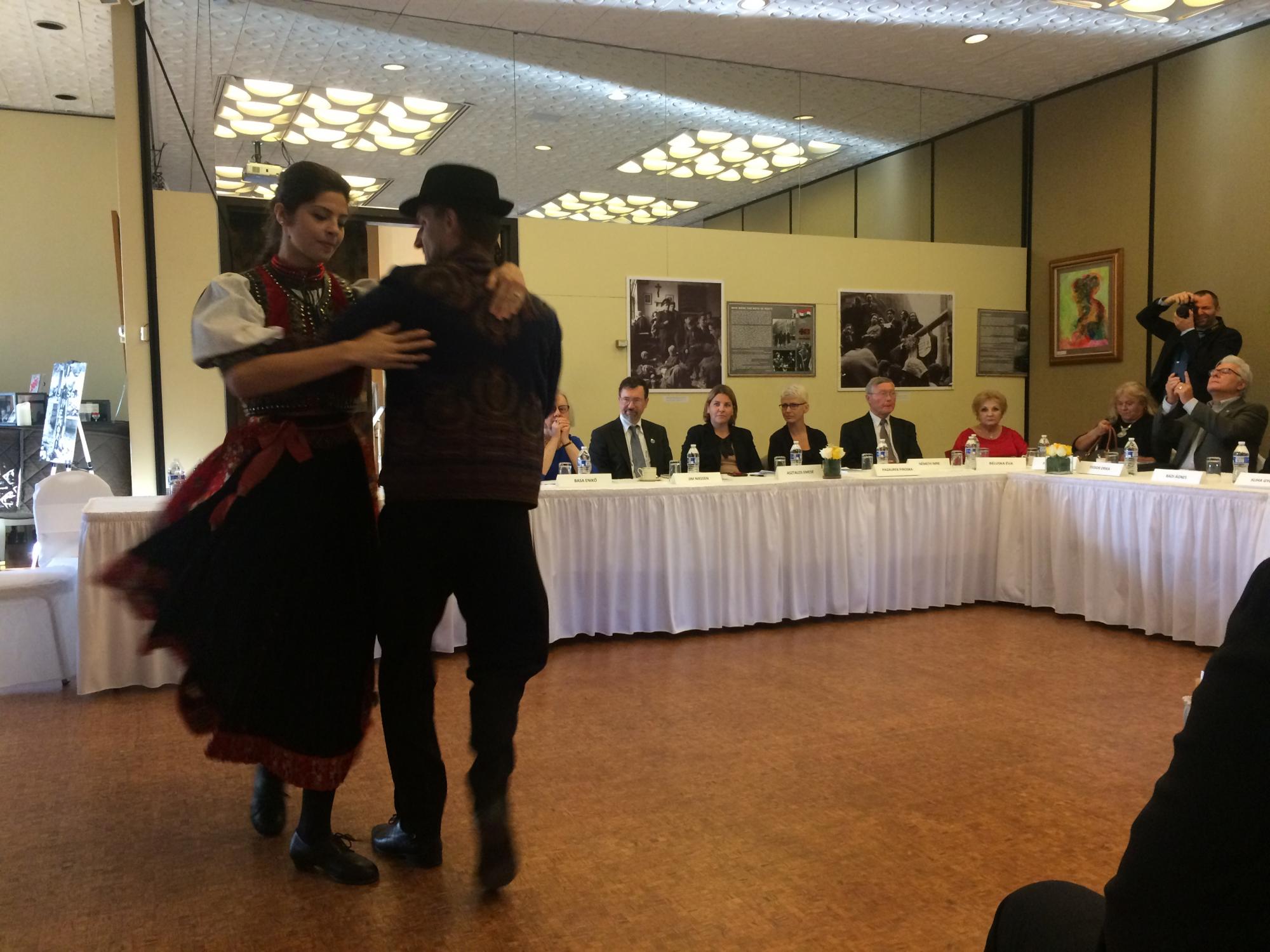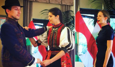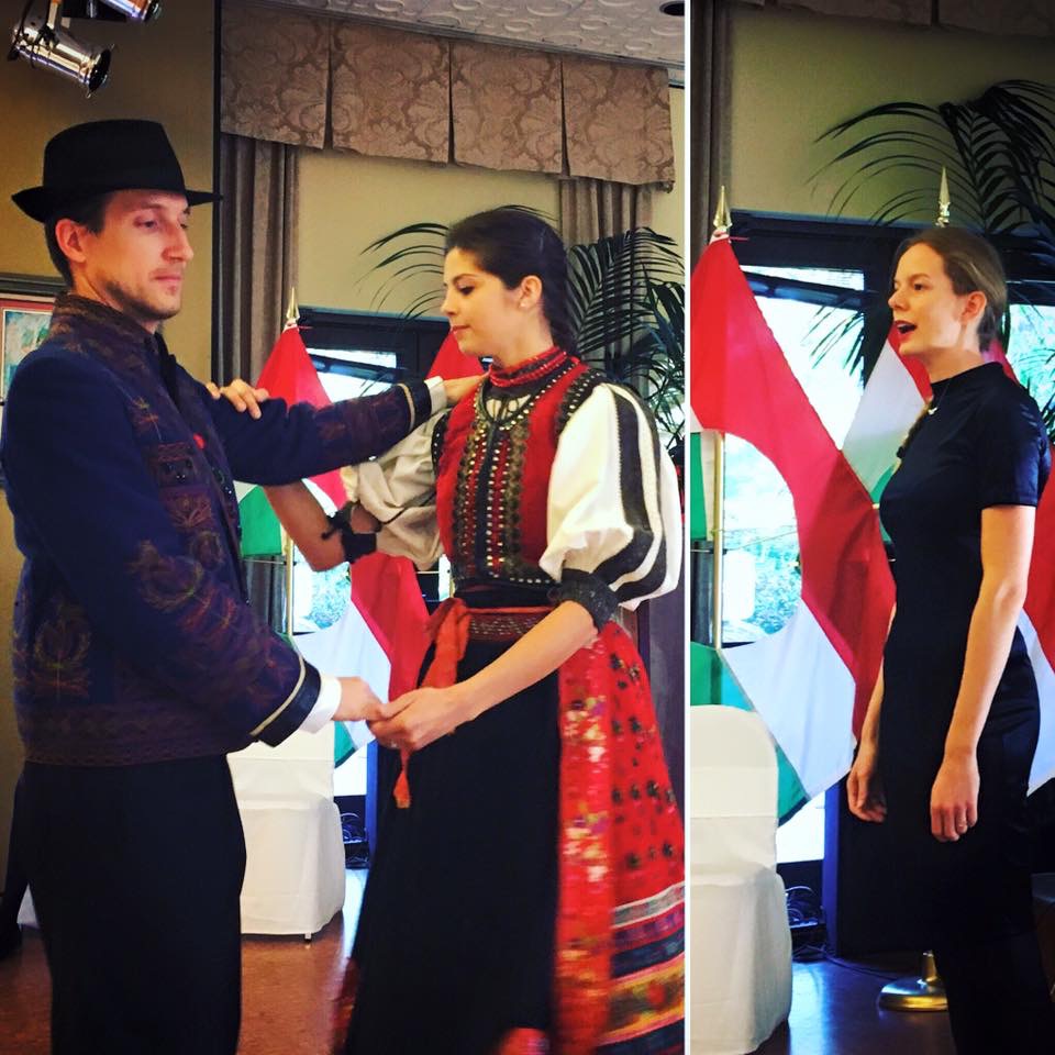 A pénteki napra felkészülve érkeztünk, az előtte lévő pár napban jó csapattá kovácsolódtunk ösztöndíjas társaimmal. A szerdánként megrendezett néptáncoktatásra is velem tartottak, és segítették a mezőségi táncokkal barátkozó, kezdő táncosokat. A Tisza együttesnek hála, még eredeti népviseletet is kaptunk a pénteki prezentációnkhoz, Kata és Gergő kalotaszegi és székely ruhában táncolhattak.
