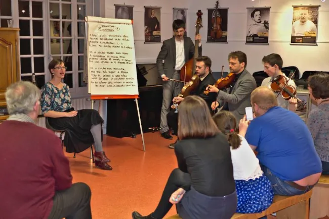 Ezt kapjuk, ha veszünk 2 petőfis és 2 kőrösis ösztöndjíast, és lehetővé tesszük, hogy együtt dolgozzanak. A Petőfi Programban, vagyis a szórványban, azon belül Bosznia-Hercegovinában Bezzeg Gyula, Szlovákiában Hunyadi Péter dolgozik a magyarságért. A Kőrösi Programban, vagyis a diaszpórában, azon belül Franciaországban Angyal Réka és jómagam segítjük a magyar egyesületek munkáját.