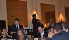 A vacsorát 20:00-kor Dékány András, az Egyesület új elnöke nyitotta meg, és köszöntötte a magyar és svájci méltóságokat, akik megtisztelték az estet jelenlétükkel. Nagy István, Magyarország berni nagykövete, csakúgy, mint Dr. Horváth Zsuzsanna ENSZ-nagykövet, illetve Genf főpolgármestere is eljöttek e jeles alkalomra. A különleges vacsora alatt egy fantasztikus hegedűművész szórakoztatta a nagyérdeműt, ami a terem csodás pompájában tökéletes hangulatot teremtett. Eközben ismét körbejártam a tombolákkal, hogy még a húzás előtt mindenkinek legyen lehetősége növelni a nyerési esélyeit.