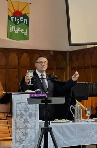 Az Adeláidéi magyar közösség számára ez a temporális átkelés különösen érzékelhető volt: a feltámadás ünnepe őszi fényben érkezett, sárguló levelek és rövidebbé váló napok közé, ahol a természet éppen nem ébredezni, hanem pihenni készül. Vasárnap reggel, Adeláidéban, amikor az utcán a platánlevelek bordó színbe öltöztek, a közösség a templomba lépve húsvéti éneket kezdett.