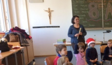 Sokuk megszólalni sem mer egy darabig. Számomra is hihetetlen, mekkora ereje van egy bizalomgerjesztő, kedves bábnak: Kerekítő Manóval kezet fognak, bemutatkoznak neki. A Mikulásra várva sokat énekeltünk, a sapkáját odavarázsoltuk, felpróbáltuk. Majd az vehette fel, aki egyedül elénekelt egy-egy dalrészletet. Mindenkinek leesett az álla, amikor a magyarul alig megszólaló csemeték magukról elfeledkezve magyarul énekeltek egyes egyedül, csakhogy következőként rájuk adja a manó a sapkáját. Szívet melengető volt hallani a szép magyarul csengő, bátor hangokat. A várva várt Télapó megérkezte természetesen a borítékolt megszeppenést is magával hozta, ami különösen a krampusz számlájára volt írható. Azonban Kerekítő Manó kezét megfogva szinte mindenki a püspökruhás Mikulás elé mert járulni, s a legbátrabbak a nevüket is elmondták, a szégyenlősebbek csak megsúgták a manónak. Bár egy emblematikus szereplője a Kerekítő foglalkozásoknak a manó, mégis inkább egy kiegészítő eleme annak a gazdagságnak, amelyet úgy hívunk, hogy néphagyomány. Hiszem és vallom, hogy népi mondókáink, népdalaink, játékaink hallgatása, átélése, elmondása, éneklése nyelvileg és érzelmileg óriási jelentőséggel bír már születéstől fogva: gyógyít, felszabadít, átölel, biztonságot ad és identitásformáló. Hál' Istennek, hogy érzik, erre szükség van, igénylik, várják, szeretik, Bizonyíték erre a szülők mosolya, kedves szava a folyosón és leginkább a gyermekek lelkesedése, érdeklődő, csillogó tekintete, széles mosolya, nagy kacaja és aktivitása. Köszönöm!