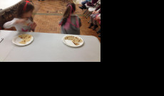 A hungarikumokat egy rövid vetítéssel mutattuk be a gyerekeknek. Örömmel ismerték fel azokat, amikkel már találkoztak. Ámulva figyelték a Rubik-kocka összerakásának világbajnokát, aki hol vakon, hol félkézzel tette helyre a négyzeteket. Aztán jöhetett a játék! Palacsintacikkelyek összerakása időre, kolbásztorony építése, majd a saját Rubik-kocka készítése.