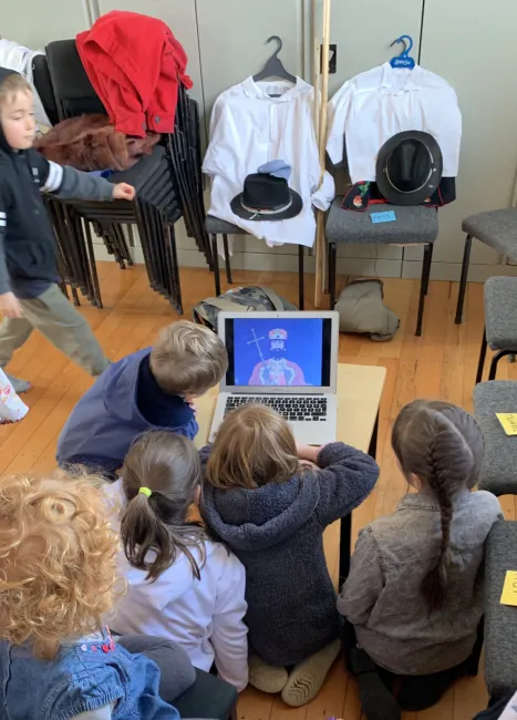 Kis átmozgatásos, táncos játék után, Jankovics Marcell: Mondák a magyar történelemből című rajzfilmsorozatából néztük meg az Istvánt királlyá koronázzák című epizódot. Az animációs játékfilmsorozat egy történelmi áttekintés gyerekek számára. A látottak alapján mindenki elkészítette a számára legérdekesebb és legfontosabb személyről, tárgyról vagy mondanivalóról látott rajzkompozícióját. A műveket mindenki kis üzenetté csavarta szallaggal átkötve héliumos lufihoz erősítette. A lufikra kötött üzenetet pedig a közös megemlékezéskor Magyararország felé szélnek eresztettük a gyerekekkel.