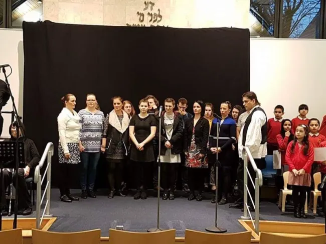 De ennél sokkal többet és sokkal meghatóbbat élhettünk át a koncerten! A Birchfields Primary School kisdiákjai után a londoni St Martin-in-the-Fields kórusa következett, ezután táncoltunk és énekeltünk mi magyarok, majd a programot a helyi Menorah Synagogue kórusa zárta. S ezután következett a valódi csoda: a finálé! Az esemény összes énekese és mi magyar táncosok a színpadon álltunk, s közösen énekeltük a közönséggel Ruti irányításával az Örömódát angolul, a Kol ha-o-la ku-lo-t héberül, a Hair című musicalból az Aquarius-t és a Let the Sun shine-t és persze a Hallelujah-t angolul.