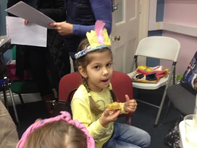 Ebéd után újra összegyűlt az összes csoport, hogy megnézze és meghallgassa a Vízkereszt és a háromkirályjárás hagyományait. Persze minden tudás hamarabb és pontosabban megmarad a kis fejekben, ha ki is próbálják azt, vagy hozzájuk kapcsolódóan játszanak valami érdekeset. Így mi koronát készítettünk hármas fonással, díszítettük kedvünkre, s megtanultunk egy régi versrészletet a csillagjáráshoz is: