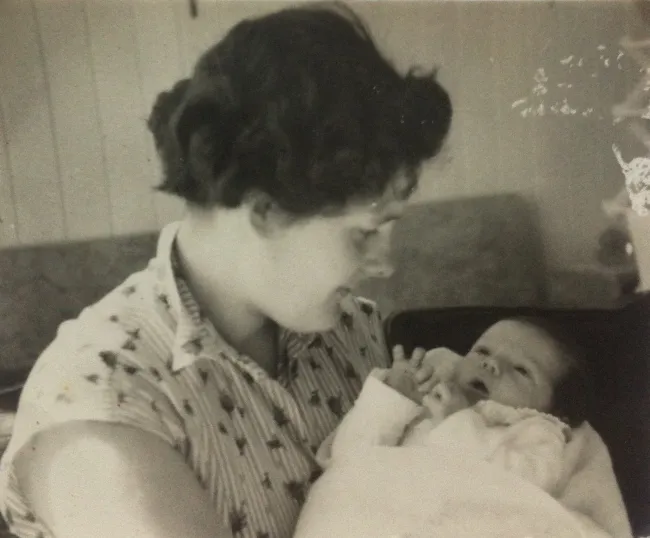 Lucia elsőszülött gyermekével, Lacikával, már Oslóban.