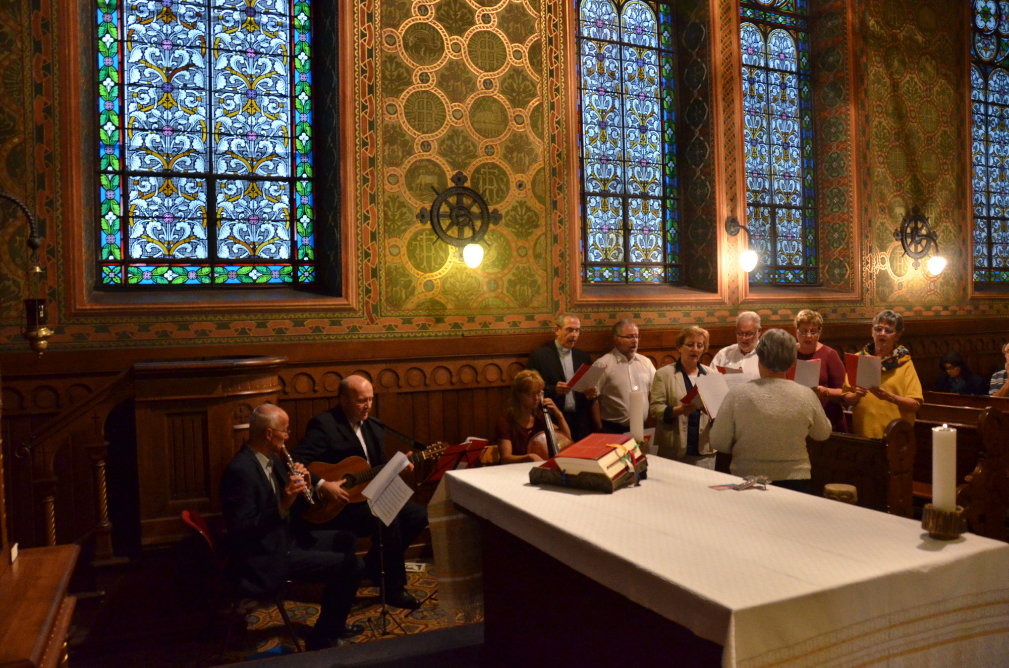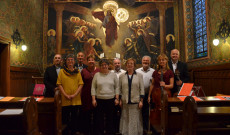 A szentmise közben ennek a zseniális ferences szerzetesnek az énekkönyvéből hallhattunk dalokat. A háromtagú zenekart (fuvola, gitár, cselló) és a rektor atyával kibővült 6 fős énekkart Szalay Olga vezette. Nagyon kellemes hangzásvilágú, lendületes tempójú énekeket adtak elő, amelyek szép ívet és keretet adtak a liturgiának. A szentmise után a karvezető röviden beszélt még Kájoni Jánosról. A polihisztor ferences szerzetes nemcsak a zene terén alkotott nagyot, hanem festett, verses kötete is megjelent, valamint összeállított herbáriumot is. Az egyik legismertebb műve a Kájoni kódex, amely zenetörténeti szempontból igazi kuriózum, hiszen komoly gyűjtemény egyházi és világi kórus és hangszeres művekből. Noha Kájoni János tudott kottázni, a másik műve, a Cantionale Catholicum, amely 820 énekből áll, mégis kotta nélküli – magyarázta a zenetörténész. A szövegek mellett csak azt jelezte, hogy mely dallamra kell énekelni, s ez már elegendő volt az akkori kor emberének. Csak évszázadokkal később 1979-ben jelent meg egy újabb kiadása a gyűjteménynek, amely Domonkos Pál Péternek köszönhetően kottával egészítette ki az énekeket. Szalay Olga a Kájoni énekekben és a felújított dallamokban jó lehetőséget lát arra, hogy a mai ifjúság számára is vonzóvá tegye a régebbi egyházi énekek szövegeit. A gitárral, fuvolával, csellóval, sőt olykor dobbal kísért dalok hangzása valóban különleges, kicsit más, mint a megszokott orgonás énekek, ugyanakkor mégsem szakadnak el annyira a klasszikus szövegektől, mint az új keletű gitáros énekek. Így az idősebbeknek és a fiatalabbaknak egyaránt magával ragadó tud lenni. Ezekből a dalokból hallgathattunk meg még végezetül ötöt, melyek nem kifejezetten a liturgiához kötődnek, de hangulatukban, mondanivalójukban jól kapcsolódtak az esthez. Volt köztük katonaének (alcíme szerint „a török időkből, ma pedig az erkölcsi romlás elleni harchoz”), Balassi Bálint egyik imája és Szent István intelmeit is megénekelte a kórus. Különleges és szép dallamokat hallhattunk a Pázmáneum kápolnájában. Én magam még napokkal később is azon kaptam magam, hogy ezeket az énekeket dúdolom magamban, s valahogy mintha könnyebben és lendületesebben ment volna a munka. Hogy ennek köszönhetem, azt nem tudom, de az egészen biztos, hogy nem utoljára találkoztam Kájoni János nevével és énekeivel.