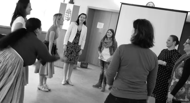 Február 10-én, a Németországi Magyar Szervezetek Szövetsége (BUOD) oktatásügyi konferenciája után egy nappal egésznapos módszertani workshopot tartott Balatoni Katalin a Nürnbergi Magyar Iskolában, melynek témája a hagyományos ünnepek és az azokhoz kapcsolódó népi játékok szerepe volt az oktatásban. Beszámolónk.