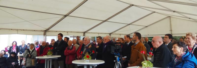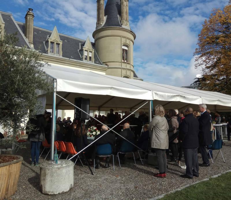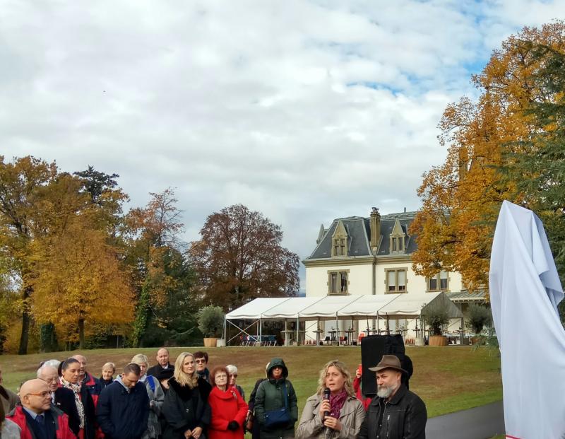 A hivatalos átadáson több, mint száz fő vett részt. Köztük olyan prominens személyek, mint Nagy István, Magyarország svájci nagykövete, Dr. Schőberl Márton, kulturális diplomáciáért felelős helyettes államtitkár, Dr. Horváth Zsuzsanna, Magyarország állandó ENSZ képviselője, Laurent Jimaja, Grand-Saconnex polgármestere, Párkányi Péter, a mű alkotója, valamint Mercz László a Genfi Magyar Kulturális Központ elnöke.
