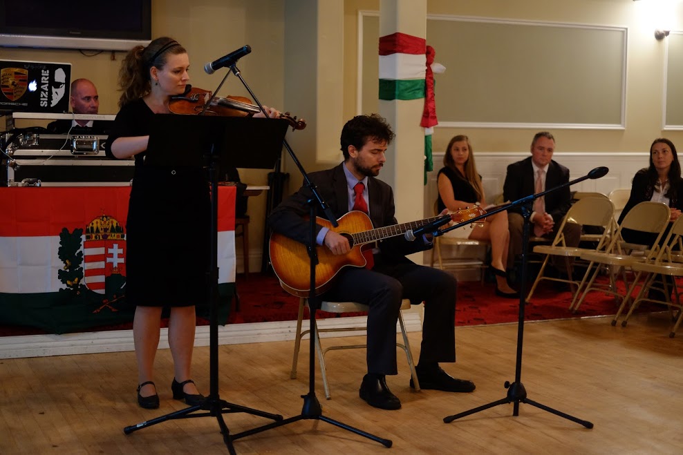 Október 23-án, reggel Pasaicon, a szabadságharcos emlékműnél koszorúzást tartottunk, ahol a Lant és Toll hagyományőrző csoport énekelt.