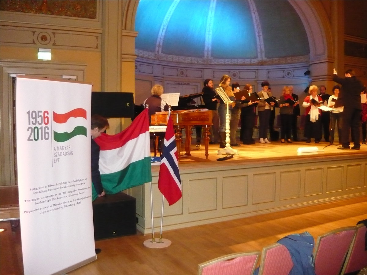 Oslóban, egy több pilléres eseménysorozattal tisztelegtek a szervezők (Norvég-Magyar Egyesület, Magyarország Nagykövetsége, Magyarok Baráti Köre) az '56-o hősök emléke előtt. A mostani évforduló különösen fontos az életünkben, egyrészt, mert kerek évfordulóról van szó, másrészt az '56-os generáció elért abba az életkorba, ami magában hordja az elmúlást. Ha ők elmennek, elmegy a történelemnek egy nagyon fontos darabja is. Ez az évforduló arról is kell szólt, hogy az emlékeket át kell adni a fiatalabb generációnak, hogy általuk továbbélhessenek '56-os hőseink. A műsort három szálra fűzték fel: a gyászt és a tiszteletet, a szívfacsaró kórusművek, az elhangzó beszédek (Sikó Anna Mária, Gyurta Dániel, Dr. Nagy Lucia Mária), a hálát a hősök iránt, hogy szabadságban élhetünk, a fiatal néptáncosok pedig az emlékezés továbbörökítését szimbolizálták, fejezték ki.