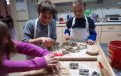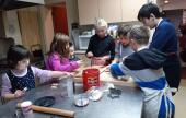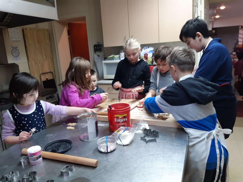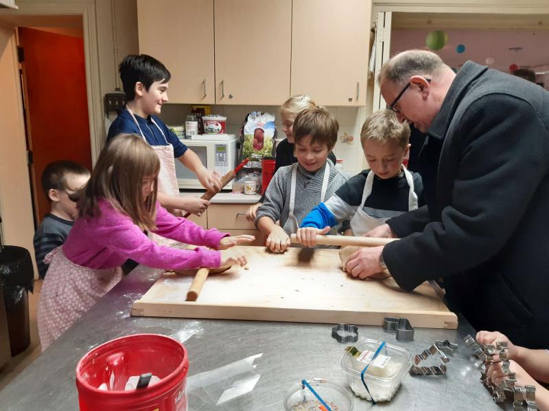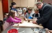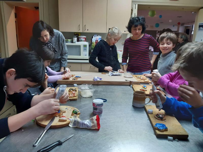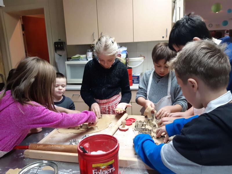 A program második felében következett a várva várt mézeskalácssütés. Már a Csillagösvény Református Egyesület elnöke, Nagy Enikő jóvoltából előre elkészített tészta nyújtása is nagy élmény volt: szorgosan perdültek-fordultak a nyújtófák a nagyobb gyerekek keze alatt, a kisebbek pedig csillogó szemmel figyeltek. Alig várták, hogy a felnőttek megállapítsák: jöhet a szaggatás. Nem volt könnyű a különböző formák kiválasztása, hiszen olykor már zavarba ejtő volt a figurák széles választéka. Természetesen mindenki igyekezett minél jobban színesíteni a gyűjteményt. A sütés szinte végtelennek tűnő percei könnyebben teltek a dekoráció előkészítésével: minden egyes darab egyedi tervezés és gondos odafigyelés eredménye lett. A felnőttek háttérsegítsége a csodálatos végeredmény megörökítésében és kóstolásában is megnyilvánult. A jó hangulatban elkészült mutatós és finom díszekhez már csak az illatos fenyőfát kell – a lehető legnagyobb titokban – beszerezni.