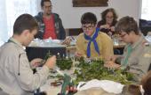 Délután a cserkészek és szülők, a sokéves hagyományt folytatva, adventi koszorúkat, díszeket készítettek. Sokan itt készítik el az ünnepi asztalra szánt koszorút.