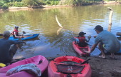 A helyszín nem várt kihívásokat állított elénk eleinte, de az alacsony vízállás és a folyómederbe dőlt fák nem fogtak ki csapatunkon. Az izgalmakat követően korábbi árvizek által elsodort kamionnal, kerekekkel, házrészekkel is találkoztunk. De nem csak ezek tartották fenn a figyelmünket, hanem a gyönyörű táj és különleges élővilága is. Igazán idilli volt a madárcsicsergés közepette csordogálni a folyón.