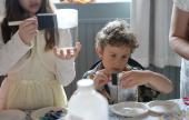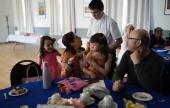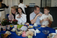 A program alatt finom teával és gyümölcsös süteménnyel vendégelték meg az anyukákat, tovább fokozva az esemény meghitt, családias hangulatát, illetve a Magyar Ház vezetősége cserepes virágokkal is kedveskedett az édesanyáknak.