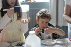Ezután az alkotásé lett a főszerep. A kézműves foglalkozás során egyedi, anyák napi vázák készültek, amelyeket a gyermekek édesanyjukkal együtt díszítettek ki. Ezek a kis alkotások maradandó emlékei lettek a közös délutánnak, és szívből jövő ajándékként vihették haza őket a résztvevők.