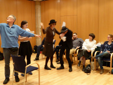 A közönséget véletlenszerűen három csoportra osztották, melyek színházi tapasztalattal rendelkező segítők irányításával dolgozták fel Arany A Walesi bárdok, Vörös Rébék, illetve a Fülemile című szövegeit. A segítők jó érzékkel vezették a csoportokat, hiszen közülük ketten, Krausz Nagy Ágnes Heves és László Attila az Okuláré Felolvasószínház tapasztalt tagjai, míg Fonyódi Zita óvodapedagógus, így mindannyian jártasak a drámapedagógia világában.