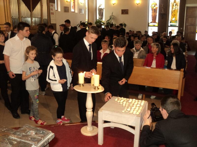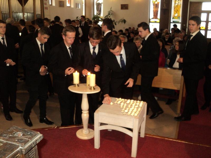 2016. szeptember 28-án, szerdán ausztriai magyaroknak egy zarándokcsoportja is útnak indult Gyulafehérvárra, hogy másnap, Szent Mihály főangyal főünnepén részt vegyen a gyulafehérvári főegyházmegye és a főszékesegyház búcsúján, valamint Isten Szolgája Márton Áron püspök kőszarkofágjának leleplezésén. Szeptember 29-én, csütörtökön 18.00 órakor mi, ausztriai magyar zarándokok, a gyulafehérvári Gróf Mailáth Gusztáv Károly Római Katolikus Teológiai Líceum diákjaival közösen nem egy gyertyát gyújtottunk Márton Áron püspök emlékére, hanem több mint százat. Mindenki gyújtott ugyanis gyertyát, aki jelen volt a líceum kápolnájában a Zödös Szabolcs Petőfi-ösztöndíjassal közösen tartott ünnepségünkön, amelyen Marosán Csaba, a Kolozsvári Állami Magyar Színház színművésze is bemutatta Áron püspökről szóló előadását.