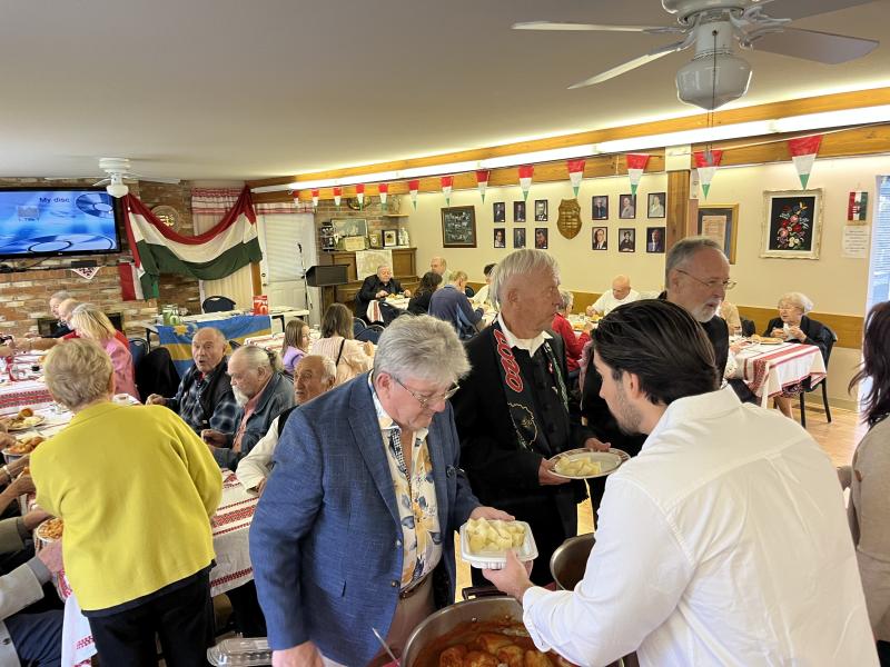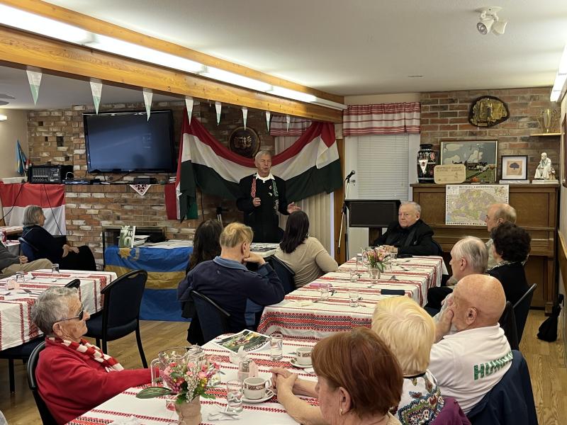 Október 19-én pedig méltó módon emlékeztünk meg az 1956-os forradalom és szabadságharc történéseiről az Okanagani Magyar Házban. Ezúttal egy közismert magyarországi művész, Sziki Károly látogatott el hozzánk, színvonalas műsorban emlékezett meg a magyar nép hőseiről - külön mesélt nekünk az 56-os forradalom és szabadságharc politikai előzményeit és eseményeit. Öröm volt számunkra, hogy az idei megemlékezésen szép számban jelentek meg honfitársaink. Csoma Eszter, mentorom irányításával finom töltött paprika készült, főtt krumplival. Valamint almás pite fagylalttal, melyet egy tagtársunk készített - ennek is igen nagy sikere volt.