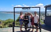 Kőrösi Csoma Sándor Program ösztöndíjas társaimmal, Német Vikivel és Deák Bálinttal boldogan ülünk a Páez Viláró házával háttérben.