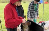 És valóban, volt minden, ami szívnek, kéznek, szemnek kedves: forgószínpad nyolc állomással (készülve az idei központi Akadályversenyre), festés, népdalozás, szoborkészítő verseny, áhítat, és ebédre őrsi főzés. Az esti tábortüzet Csajka Tamás és jómagam vezettük. A pavilon alatt tartottuk a dagonya miatt; kis ragyogó gyertyák köré telepedtünk le énekelni, játszani, együtt lenni.