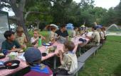 Október 6-án és 7-én San Dimasban együtt táboroztak a dél-kaliforniai cserkészek, akik San Diegoból, Las Vegasból, Los Angelesből és Hollywoodból érkeztek. A legelszántabbak már péntek este felállították a sátrakat a Frank G. Bonelli Regional County Parkban. A szombat reggel egy nagy sétával indult a Puddingstone tó partján. Ezt a zászlófelvonás követte, majd a közös ebéd után az örsök állomásról állomásra sétálva újabb és újabb tudással lettek gazdagabbak. Tanultak többek között az illemről és a környezetvédelemről is. A sort a népdal- és a néptánctanulás zárta. Ezalatt a felnőttek előkészítették a finom aznapi ebédet és vacsorát a 120 táborozó részére. A közös vacsora után a cserkészek a tábortűz mellett énekeltek. Itt került sor a kiscserkészek felavatására is. Este kilenckor takarodót fújtak. Ekkor érkezett az éjjeli segítőosztag: a borzok és mosómedvék a maradékok eltakarításában igyekeztek segíteni. A vasárnap délelőtt vidám számháborúval telt, majd egy ízletes ebéddel zárult a mozgalmas őszi hétvége.