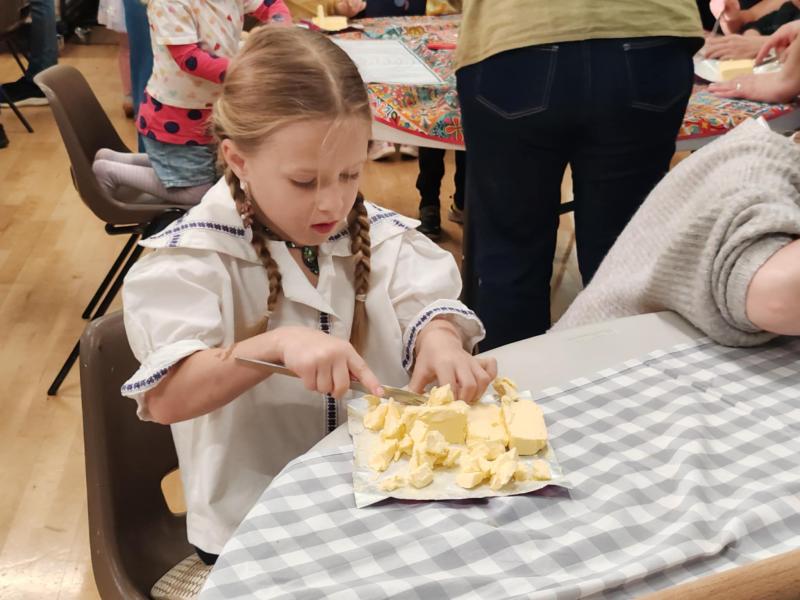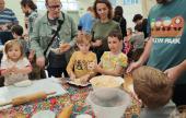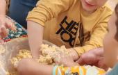 A rendezvényen gyerekek és felnőttek együtt gyúrták és szaggatták a tésztát, majd amíg Boglárka mesélt, a pogácsák a sütőben sültek. A program végén mindenki jóízűen elfogyasztotta a saját készítésű „hamuban sült” pogácsáját – pont úgy, ahogy a mesékben történik.