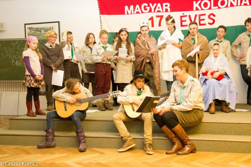 Ebben a hangulatban tértek vissza a fiatalok a Magyar Kolónia közönségéhez, akikkel megosztották az erdei karácsony élményeit. Elénekelték az adventi időszakban tanult karácsonyi népi énekeket, illetve átadták a karácsonyi bibliai igéket is. Gitáros és szöveges jelenetek is gazdagították a programot.