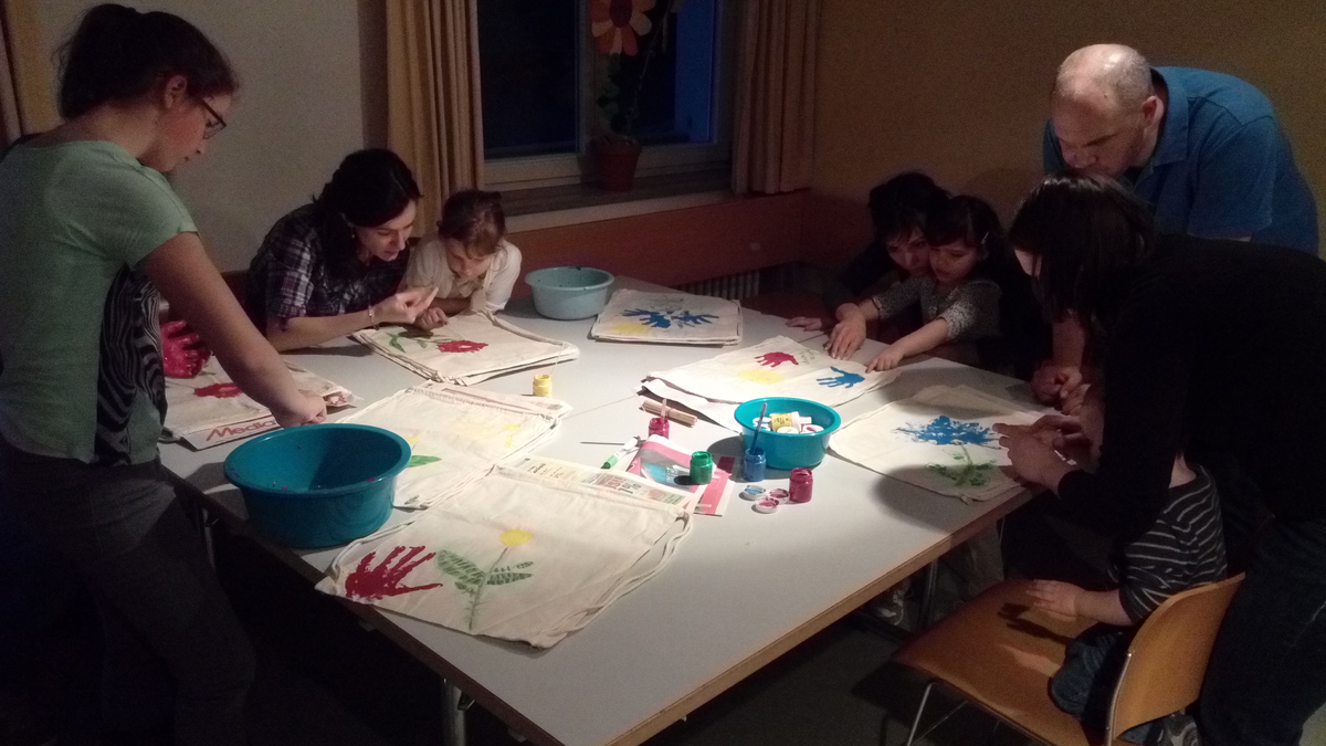 Erding beletartozik a Müncheni Magyar Katolikus Egyházközség körébe, ugyanis ez az egyik misézőhelye a müncheni plébános atyának, Merka Jánosnak. Havonta egy misét mond itt az atya és azt mindig valamilyen program és agapé (szeretetvendégség) követi. A szombati alkalommal én hoztam a gyerekek számára elfoglaltságot, amíg a felnőttek filmet néztek. Bár még nagyböjt van és május még messze van, úgy alakult, hogy most készültünk fel a gyermekekkel az anyák napjára. Én vittem az ötleteimet és az anyagot a barkácsoláshoz. A gyermekekkel batyut festettünk, amit a gyermekek, de még a segítséget nyújtóó felnőttek is élveztek. Íme a képválogatás róla: