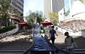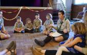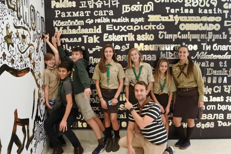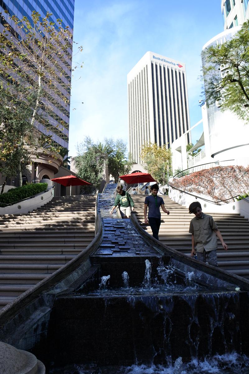 Aztán eljött a várva várt pillanat és minden kiscserkész felvette a farsangi jelmezét, amit a színpadon mutattak be. Ezzel a farsangi mulatsággal biztosan sikerült elűzniük a telet kiscserkészeinknek. Közben a nagyokkal közösen elutaztunk Los Angeles ikonikus felhőkarcolójához, a US Bank épülethez. Mielőtt felmentünk volna a több mint 310 m (1018 foot) magas torony kilátójába, a két cserkészőrs feladata volt megbecsülni, milyen magas lehet az épület. Majdnem pontosan sikerült eltalálniuk a toronyház magasságát. Az épület nevezetessége a tetején található Skyspace, ahol 360° panorámában lehet megcsodálni Los Angelest a magasból. Valamint itt található egy üvegfalú csúszda, ahol a bátor jelentkezők 300 méteres magasságban csúszhatnak le a 70. emeletről a 69-re. A cserkészek mindannyian kiállták a bátorságpróbát, és mint a magyar mondák legendás turulmadara repültek Los Angeles felett.