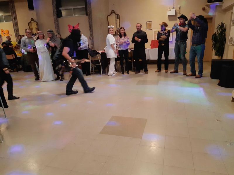 A jelmezparádét követően fergeteges dínomdánom vette kezdetét. A vidám hangulatot a nemrég összeállt Montreali Magyar Trió biztosította, akik igazán próbára tették a közönséget, hiszen jóval éjfél utánig tartották táncban és vigasságban a vendégsereget.