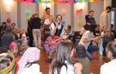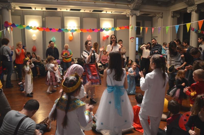 A sok hercegnő, lovag, s mindenféle erdei állat között még Yoda mestert és Harry Pottert is láthattuk felvonulni. Miután mindenki öltözékét megcsodáltuk, közös farsangi táncot jártunk a jelmezesekkel és a szervezőkkel egyaránt. Ezt követte a dalfelismerő játék: az általam furulyán játszott dallamot kellett a gyerekeknek kitalálni, s azokat aztán együtt el is énekeltük. Ezután egy új dalt tanultunk meg közösen, majd pedig az érdeklődőkkel népi játékokat játszottunk. A résztvevőknek a rövid szünetekben lehetőségük volt megkóstolni a többiek által készített házi finomságokat is.
